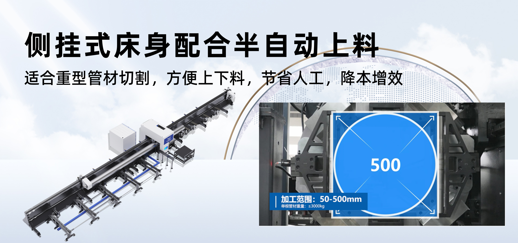 適合重型管材切割,方便上下料,節(jié)省人工,降本增效
